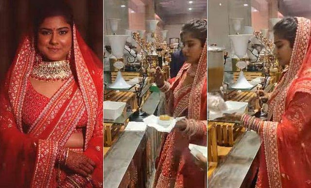 പാനി പൂരി കണ്ടാല്‍ പിന്നെ രണ്ടെണ്ണം അകത്താകാതെ രക്ഷയില്ല, അതിപ്പോ സ്വന്തം കല്യാണദിവസമാണെങ്കിലും അങ്ങനെതന്നെ. വിവാഹപന്തലില്‍ പാനി പൂരി കഴിക്കാൻ കാത്തുനിൽക്കുന്ന വധുവിന്റെയും വരന്റെയും വിഡിയോയാണ് ഇന്‍സ്റ്റഗ്രാമില്‍ ഇപ്പോള്‍ വൈറലായിരിക്കുന്നത്.