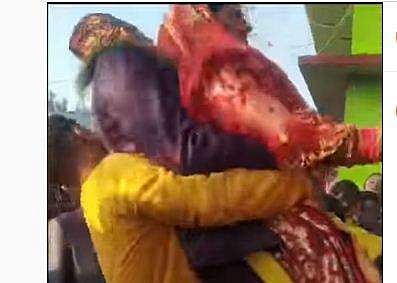 വിവാഹ ചടങ്ങിനിടെ വധുവരന്മാര് വീഴുന്നതാണ് ഒരേ സമയം എല്ലാവരിലും ചിരി പടര്ത്തിയ സംഭവം. അടുത്തടുത്ത് നിന്ന വധുവരന്മാരെ ഒരാള് ഒരുമിച്ച് പിടിച്ചുയര്ത്തി. വധുവിനെ ഉയര്ത്തുന്ന സമയത്ത് പെണ്കുട്ടി കൈയില് ഉണ്ടായിരുന്ന പൂക്കള് മുകളിലേക്ക് എറിഞ്ഞു.