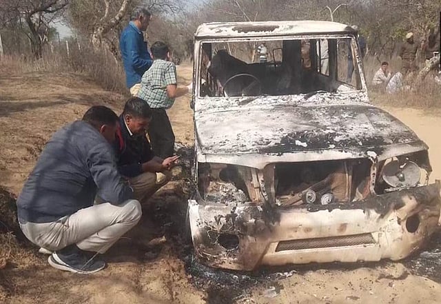 ഹരിയാനയില് ഭിവാനി ജില്ലയിലാണ് സംഭവം. കത്തിക്കരിഞ്ഞ നിലയില് വാഹനം കണ്ടതായി നാട്ടുകാരാണ് പൊലീസിനെ വിവരം അറിയിച്ചത്. തുടര്ന്ന് വിശദമായി പരിശോധിച്ചപ്പോഴാണ് വാഹനത്തിനുള്ളില് രണ്ട് മൃതദേഹങ്ങള് കണ്ടെത്തിയത്. വാഹനത്തിന്റെ ചെസിസ് നമ്പര് ഉപയോഗിച്ചാണ് വാഹനത്തിന്റെ ഉടമയെ തിരിച്ചറിഞ്ഞത്. തുടര്ന്ന് നടത്തിയ അന്വേഷണത്തിലാണ് മൃതദേഹങ്ങള് തിരിച്ചറിഞ്ഞത്.