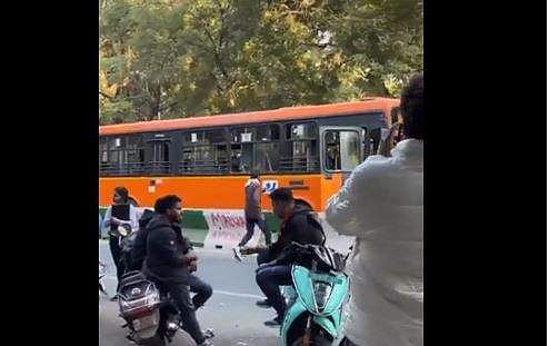 ഡല്‍ഹി ട്രാന്‍സ്‌പോര്‍ട്ട് കോര്‍പ്പറേഷന്റെ ബസാണ് നടുറോഡില്‍ നിര്‍ത്തിയത്