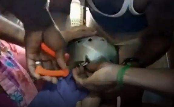 കളിക്കുന്നതിനിടെ പിഞ്ചുകുഞ്ഞിന്റെ തല പാത്രത്തില്‍ കുടുങ്ങി; ഒരു മണിക്കൂര്‍ നീണ്ട പരിശ്രമം, രക്ഷപ്പെടുത്തല്‍