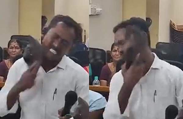 ഹൈദരാബാദ് : തെരഞ്ഞെടുപ്പ് വാഗ്ദാനങ്ങള് പാലിക്കാന് കഴിയാത്തതിനാല് ചെരിപ്പുകൊണ്ട് സ്വന്തം മുഖത്തടിച്ച് കൗണ്സിലറുടെ പ്രതിഷേധം. തെലുങ്കുദേശം പാര്ട്ടി കൗണ്സിലര് മുളപാര്ത്തി രാമരാജുവാണ് നഗരസഭ കൗണ്സില് യോഗത്തിനിടെ രോഷം പ്രകടിപ്പിച്ചത്. ആന്ധ്രയിലെ ആനകപള്ളി നാര്സിപട്ടണം മുനിസിപ്പാലിറ്റി 20-ാം വാര്ഡിലെ കൗൺസിലറാണ് രാമരാജു.