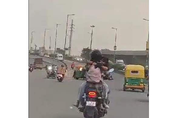 ന്യൂഡല്ഹി: അടുത്തിടെ, ബൈക്ക് യാത്രകളില് അപകടകരമായ രീതിയില് പ്രണയ ചേഷ്ടകള് കാണിക്കുന്ന കമിതാക്കളുടെ എണ്ണം വര്ധിച്ചിരിക്കുകയാണ്. ഗതാഗതനിയമ ലംഘനം നടത്തിയതിന് നിരവധിപ്പേര്ക്കെതിരെ നടപടിയെടുത്തിട്ടുണ്ട്. ഇപ്പോള് ഇത്തരത്തില് ഓടുന്ന ബൈക്കില് കമിതാക്കള് പ്രണയ സല്ലാപത്തില് ഏര്പ്പെടുന്ന ദൃശ്യങ്ങളാണ് വൈറലാകുന്നത്.