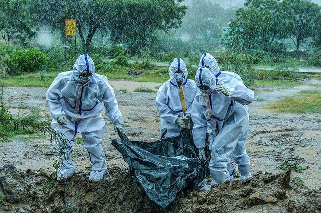 രാജ്‌കോട്ടിലെ ഏറ്റവും വലിയ ശ്മശാനമായ രാംനാഥ്പരയില്‍ പ്രതിദിനം 20 മൃതദേഹങ്ങള്‍ കോവിഡ് മാനദണ്ഡങ്ങള്‍ പാലിച്ച് മറവ് ചെയ്യുന്നുണ്ട്. അഹമ്മദാബാദില്‍ വിവിധ ശ്മശാനങ്ങളിലായി രണ്ട് ഡസണോളം മൃതദേഹങ്ങള്‍ ശനിയാഴ്ച കോവിഡ് മാനദണ്ഡങ്ങള്‍ പാലിച്ചുകൊണ്ട് സംസ്‌കരിച്ചിരുന്നു.
