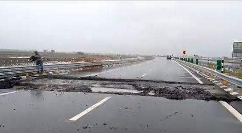 പ്രധാനമന്ത്രി ഉദ്ഘാടനം ചെയ്തിട്ട് ഒരാഴ്ച പോലും കഴിഞ്ഞില്ല; യുപിയിലെ എക്‌സ്പ്രസ് വേ തകര്‍ന്നു- വീഡിയോ