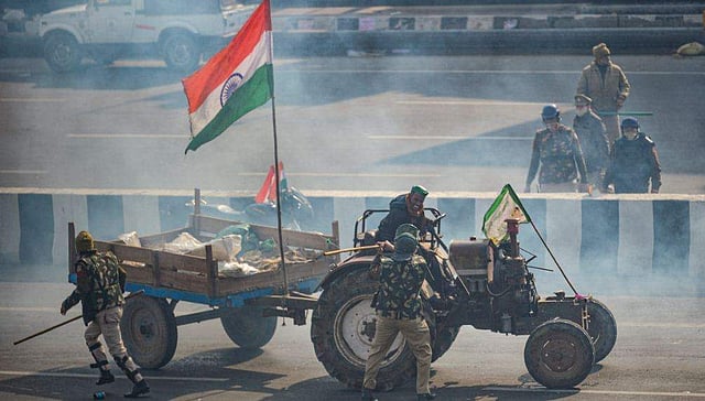 അതേസമയം, ചെങ്കോട്ടയില് അതിക്രമിച്ച് കടന്ന് സിഖ് പതാക കെട്ടിയ ആളെ തിരിച്ചറിഞ്ഞതായി ഡല്ഹി പൊലീസ് വ്യക്തമാക്കി. പഞ്ചാബിലെ തരന് തരന് ജില്ലയിലുള്ള ജുഗ്രാജ് സിങാണ് ചെങ്കോട്ടയിലെ കൊടിമരത്തില് കയറി പതാക ഉയര്ത്തിയതെന്നാണ് തിരിച്ചറിഞ്ഞത്. ഇയാള്ക്കായി പൊലീസ് തിരച്ചില് ആരംഭിച്ചു.
