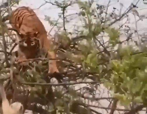 ഏറ്റവും അപകടകാരിയായ മൃഗമായാണ് കടുവയെ കാണുന്നത്. കടുവയെ കണ്ടാല് തന്നെ പകുതി ജീവന് പോകുമെന്ന് തമാശയ്ക്ക് പറയാറുണ്ട്. എന്നാല് മരത്തിന് മുകളില് ഇരയെ പിടിക്കുന്ന കാര്യത്തില് കടുവയ്ക്ക് കാര്യങ്ങള് അത്രയ്ക്ക് എളുപ്പമല്ല എന്ന് വ്യക്തമാക്കുന്ന വീഡിയോയാണ് ഇപ്പോള് സോഷ്യല്മീഡിയയില് വൈറലാകുന്നത്.