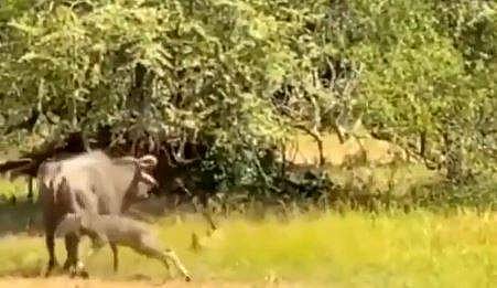 കുഞ്ഞിനെ രക്ഷിക്കാന്‍ അമ്മ എന്തുംചെയ്യും!, പുലിയെ തുരത്തിയോടിച്ച് കാട്ടുപോത്ത്- വീഡിയോ