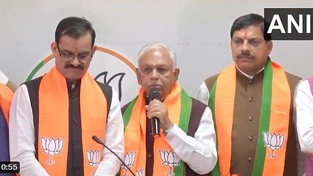 സുരേഷ് പച്ചൗരി ബിജെപിയില്‍ ചേര്‍ന്ന ശേഷം മാധ്യമങ്ങളോടു സംസാരിക്കുന്നു വിഡിയോ ദൃശ്യം