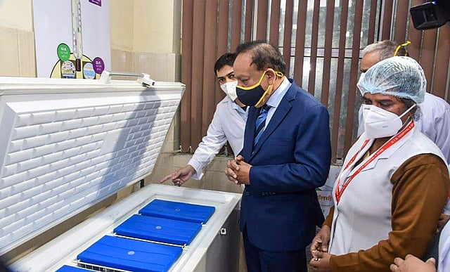 ഡല്‍ഹിയിലെ ആശുപത്രിയില്‍ കോവിഡ് വാക്‌സിന്റെ ഡ്രൈ റണ്‍ പരിശോധിക്കാനെത്തിയ കേന്ദ്ര ആരോഗ്യമന്ത്രി/ പിടിഐ