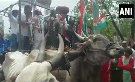 മുംബൈയില് കോണ്ഗ്രസ് കാള വണ്ടിയുമായി നിരത്തിലിറങ്ങിയാണ് സമരം നടത്തിയത്. ഈ സമരത്തിനിടെ എത്തിച്ച കാള വണ്ടി തകര്ന്നു വീണു. ഇതിന്റെ വീഡിയോ വ്യാപകമായി ഇപ്പോള് പ്രചരിക്കുന്നുണ്ട്. പ്രവർത്തകർ ഗ്യാസ് കുറ്റിയും മറ്റുമായി വണ്ടിയിൽ കയറിയതോടെ ഭാരം കൂടിയാണ് അപകടമുണ്ടായത്.