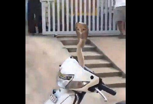 സുശാന്ത നന്ദ ഐഎഫ്എസ് ഒരു വര്ഷം മുന്പ് ട്വിറ്ററില് പങ്കുവെച്ച വീഡിയോയാണ് ഇപ്പോഴും പ്രചരിക്കുന്നത്. ഇത് എവിടെയാണ് നടന്നത് എന്നകാര്യം വ്യക്തമല്ല. സ്കൂട്ടിയുടെ ഹാന്ഡിലില് ഒളിച്ചിരിക്കുന്ന മൂര്ഖനെ പുറത്തെടുക്കുന്നതാണ് വീഡിയോയുടെ ഉള്ളടക്കം. കമ്പിവടി ഉപയോഗിച്ച് പാമ്പിനെ പുറത്തേയ്ക്ക് വരുത്താന് ശ്രമിക്കുന്നതാണ് വീഡിയോയുടെ തുടക്കത്തില്.