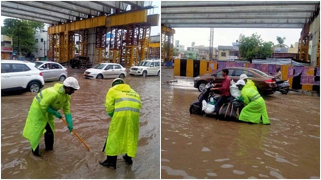 ഹൈദരാബാദ്: തെലങ്കാനയില് കനത്ത മഴ തുടരുന്നു. പേമാരിയെത്തുടര്ന്ന് ഹൈദരാബാദ് നഗരം വെള്ളക്കെട്ടില് മുങ്ങി. പ്രധാനറോഡുകളെല്ലാം പ്രളയത്തില് മുങ്ങിയിരിക്കുകയാണ്. കാറ്റില് മരങ്ങള് മറിഞ്ഞു വീണും, മഴയില് റോഡുകള് മുങ്ങുകയും ചെയ്തതോടെ ഗതാഗതവും താറുമാറായി. പെരുമഴയെത്തുടര്ന്ന് നിരവധി വീടുകളിലും കടകളിലും വെള്ളം കയറി.