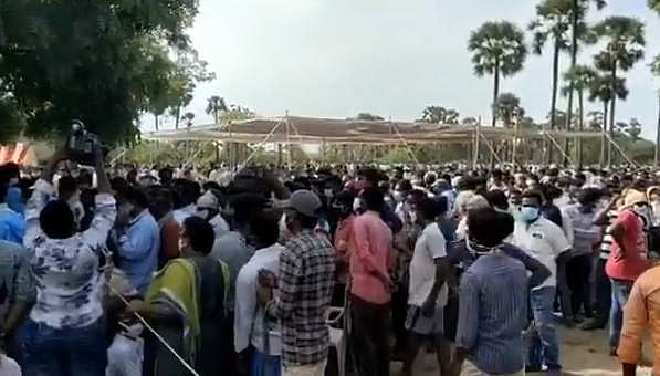 അമരാവതി: കോവിഡിനെ തുരത്തുന്ന ദിവ്യമരുന്ന് വാങ്ങാൻ ഇരച്ചെത്തി ജനക്കൂട്ടം. ആയുർവേദ ഡോക്ടറെന്ന് സ്വയം അവകാശപ്പെടുന്ന ആൾ കോവിഡിനെ ചെറുക്കുന്ന മരുന്ന് വിതരണം ചെയ്യുന്നുണ്ടെന്ന് അറിഞ്ഞാണ് ആയിരക്കണക്കിന് ആളുകൾ എത്തിയത്. ബോനിഗി ആനന്ദ് എന്നയാളാണ് കോവിഡ് സുഖപ്പെടുമെന്ന് അവകാശപ്പെട്ട് മരുന്നു വിതരണം ചെയ്തത്.
