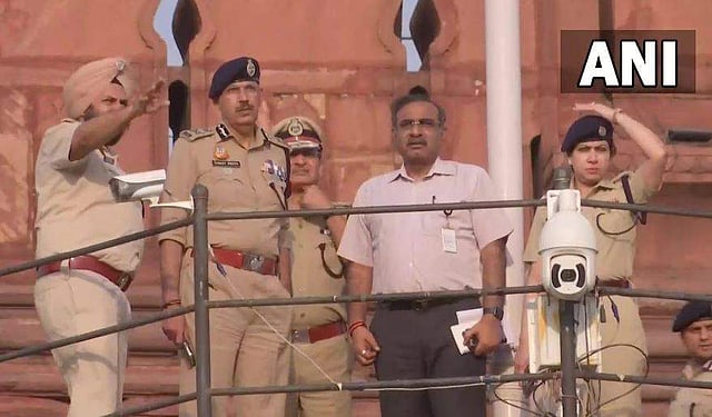 സ്വാതന്ത്ര്യദിന ആഘോഷങ്ങൾ നടക്കുന്ന ചെങ്കോട്ടയിലെ സുരക്ഷാ സജ്ജീകരങ്ങൾ പരിശോധിക്കുന്ന ഡൽഹി പൊലീസ് കമ്മീഷണർ സഞ്ജയ് അറോറ/ ഫോട്ടോ: എഎൻഐ