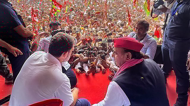 ലഖ്നൗ: യുപിയിലെ പ്രയാഗ്രാജിൽ ഇന്ത്യ സഖ്യ മുന്നണിയുടെ പ്രചാരണ റാലിയിലേക്ക് ഒഴുകിയെത്തിയത് വൻ ജനാവലി. ആൾക്കൂട്ടം ഇരച്ചെത്തിയതോടെ പ്രസംഗിക്കാൻ പോലും സാധിക്കാതെ കോൺഗ്രസ് നേതാവ് രാഹുൽ ഗാന്ധിയും സമാജ്വാദി പാർട്ടി നേതാവ് അഖിലേഷ് യാദവും വേദി വിട്ടു.
