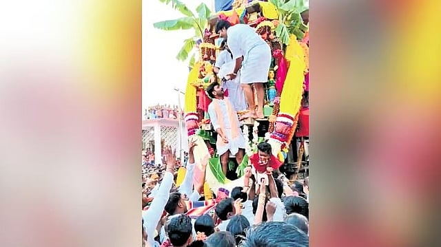 'ഭാഗ്യവും ആരോഗ്യവും കൈവരും'; രഥത്തില്‍ നിന്ന് പിഞ്ചു കുഞ്ഞുങ്ങളെ വലിച്ചെറിഞ്ഞ് പുരോഹിതര്‍, പുതപ്പു നീട്ടി പിടിച്ച് ഭക്തര്‍, വിചിത്ര ആചാരം
