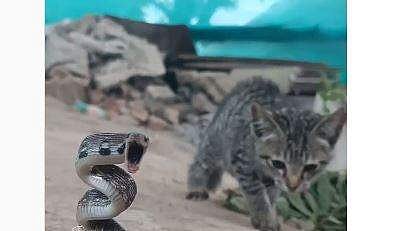 പാമ്പുമായി ബന്ധപ്പെട്ട വീഡിയോകള്ക്ക് കാഴ്ചക്കാര് ഏറെയാണ്. ഇപ്പോള് പാമ്പും പൂച്ചക്കുഞ്ഞും തമ്മിലുള്ള പോരാട്ടത്തിന്റെ ദൃശ്യങ്ങളാണ് വൈറലാകുന്നത്.