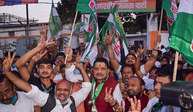 എന്‍ഡിഎ പ്രവര്‍ത്തകരുടെ ആഹ്ലാദപ്രകടനം/ പിടിഐ