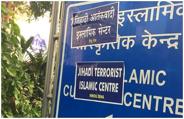 'ജിഹാദി ടെററിസ്റ്റ് ഇസ്ലാമിക് സെന്റര്' എന്ന പോസ്റ്ററാണ് ബോര്ഡില് പതിച്ചിരിക്കുന്നത്. തങ്ങളാണ് പോസ്റ്റര് പതിച്ചതെന്ന് ഹിന്ദുസേനന നേതാവ് വിഷ്ണു ഗുപ്ത മാധ്യമങ്ങളോട് പറഞ്ഞു.