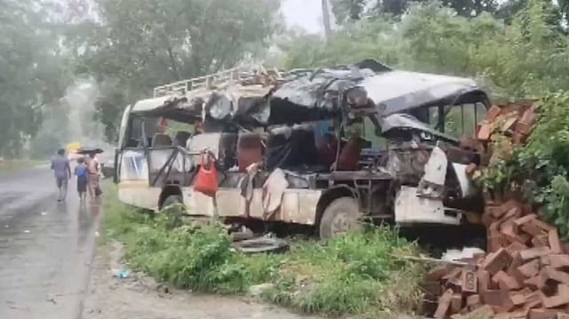 പുലര്ച്ചെ 4.30 ഓടെയായിരുന്നു സംഭവം. മോഹന്പുര് പൊലീസ് സ്റ്റേഷന് പരിധിയിലെ ജമുനിയ വനപ്രദേശത്ത് വെച്ചായിരുന്നു അപകടം. ഗ്യാസ് സിലിണ്ടറുകളുമായി പോയ ട്രക്കുമായി ഇടിക്കുകയായിരുന്നുവെന്ന് ധുംകെ സോണ് ഐജി ഷൈലേന്ദ്ര കുമാഡ സിന്ഹ പറഞ്ഞു.