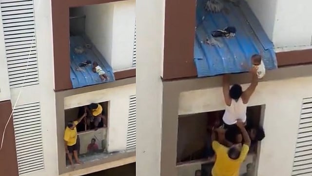 ചെന്നൈ: ചങ്കിടിപ്പോടെയാണ് പിഞ്ചു കുഞ്ഞിനെ രക്ഷപ്പെടുത്തുന്ന വീഡിയോ എല്ലാവരും കാണുന്നത്. ഫ്ളാറ്റിന്റെ മേല്ക്കൂരയില് പെട്ട് പോയ പിഞ്ചുകുഞ്ഞിനെ അതിസാഹസികമായി രക്ഷപ്പെടുത്തുന്ന വീഡിയോ സാമൂഹിക മാധ്യമങ്ങളില് വൈറലാണ്. ശ്വാസം അടക്കിപ്പിടിച്ച് മാത്രമേ ആര്ക്കും ഈ വീഡിയോ കാണാന് കഴിയൂ.