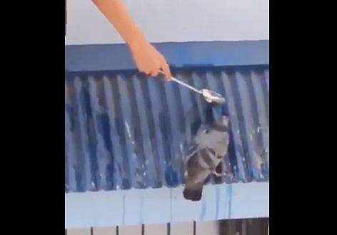 തളര്ന്നിരിക്കുന്ന പ്രാവിന് വെള്ളം കൊടുക്കാന് ബുദ്ധിമുട്ടാണെന്ന് തിരിച്ചറിഞ്ഞ് സപൂണില് വെള്ളം നിറച്ചാണ് പ്രാവിന്റെ ദാഹമകറ്റുന്നത്. ഒന്നാം നിലയിലെ ഗ്രില്ലിലൂടെ കൈ കടത്തി സാഹസികമായാണ് കുട്ടി പ്രാവിന്റെ ദാഹമകറ്റുന്നത്.