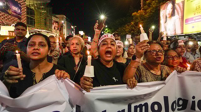 വനിതാ ഡോക്ടറുടെ കൊലപാതകത്തെ തുടര്‍ന്ന് കൊല്‍ക്കത്തയില്‍ നടന്ന പ്രതിഷേധം  പിടിഐ