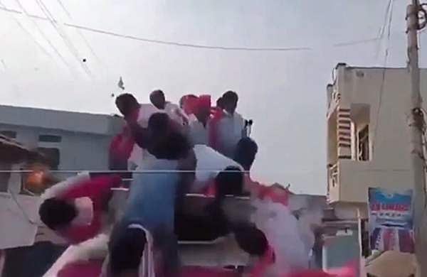 നിസാമാബാദില് തെരഞ്ഞെടുപ്പ് പ്രചാരണം നടത്തുന്നതിനിടെ വ്യാഴാഴ്ചയാണ് സംഭവം. വാഹനത്തിന്റെ മുകളില് പ്രത്യേകം തയ്യാറാക്കിയ സംവിധാനത്തില് നിന്ന് ജനങ്ങളെ അഭിവാദ്യം ചെയ്യുകയായിരുന്നു കെ ടി രാമ റാവുവും അനുയായികളും. വീഴാതിരിക്കാന് ചുറ്റിലും കമ്പി കൊണ്ടുള്ള സംരക്ഷണം തീര്ത്തിരുന്നു. എന്നാല് മുന്നിലെ വണ്ടി കണ്ട് ഡ്രൈവര് പെട്ടെന്ന് ബ്രേക്ക് പിടിച്ചപ്പോള് കമ്പി വേലി തകര്ന്ന് കെ ടി രാമ റാവുവും അനുയായികളും വാഹനത്തിന്റെ മുകളില് നിന്ന് താഴേക്ക് വീഴുകയായിരുന്നു. കെ ടി രാമറാവു റോഡിലേക്ക് വീണില്ല. എന്നാല് മറ്റൊരു ബിആര്എസ് നേതാവും രാജ്യസഭ എംപിയുമായ സുരേഷ് റെഡ്ഡി റോഡിലേക്ക് വീണു.
