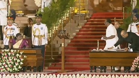 അതേസമയം സത്യപ്രതിജ്ഞ നടക്കുന്ന വേദിക്ക് പിന്നിലൂടെ കടന്നുപോകുന്നത് പുലിയല്ല, പൂച്ചയോ നായയോ ആയിരിക്കാമെന്ന് സമൂഹമാധ്യമങ്ങളില് ചര്ച്ച കൊഴുക്കുന്നു. കനത്ത സുരക്ഷയുള്ള രാഷ്ട്രപതി ഭവനില് പുലി കയറുമോയെന്നും ചോദ്യമുയരുന്നു.