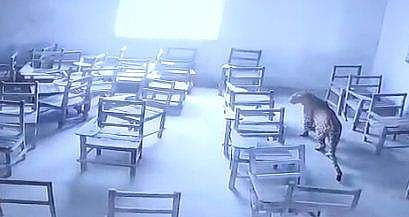 ക്ലാസ് മുറിയില്‍ പുലി കയറിയതിന്റെ സിസിടിവി ദൃശ്യം