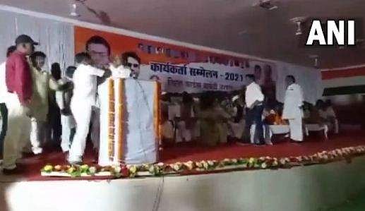 പരാമര്‍ശത്തിന് പിന്നാലെ കോണ്‍ഗ്രസ് ന്യൂനപക്ഷ സെല്ലിന്റെ ചുമതലയുള്ള ജില്ലാ പ്രസിഡന്റ് ഇഫ്തിഖാര്‍ ഹസന്‍ ഇടപെട്ടു. പവന്‍ അഗര്‍വാളില്‍ നിന്ന് മൈക്ക് തട്ടിപ്പറിക്കുകയും അദ്ദേഹത്തെ ഒരു ഭാഗത്തേക്ക് തള്ളുകയും ചെയ്തു. ഇതോടെയാണ് ചില പ്രവര്‍ത്തകര്‍ പ്രകോപിതരായി കൂട്ടത്തോടെ സ്‌റ്റേജിലേക്ക് ചാടിക്കയറിയത്.