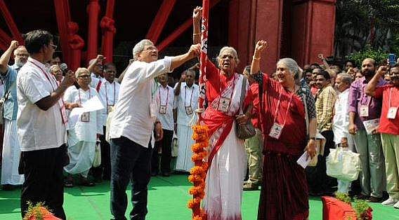 സിപിഎമ്മിന്റെ 22-ാം പാര്‍ട്ടി കോണ്‍ഗ്രസില്‍ മല്ലു സ്വരാജ്യം പതാക ഉയര്‍ത്തുന്നു, ഫയല്‍