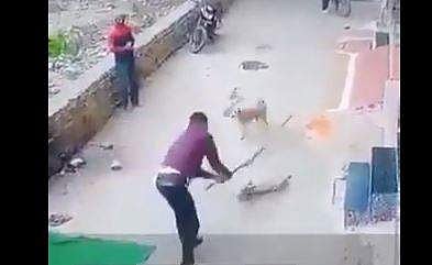 മധ്യപ്രദേശില്‍ തെരുവുനായയെ അടിച്ചു കൊല്ലുന്ന ദൃശ്യം