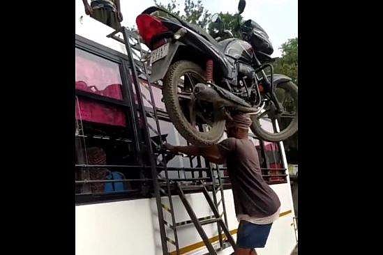 തലച്ചുമടായി ബൈക്ക് വച്ച് ബസിന് മുകളിലേക്ക് കയറ്റുന്ന തൊഴിലാളിയുടെ ദൃശ്യമാണ് വൈറലാകുന്നത്. ദൃശ്യങ്ങള് കാണുമ്പോള് ഒരേ സമയം അമ്പരപ്പും തൊഴിലാളിയോട് സഹാനുഭൂതിയും തോന്നി പോകുന്നതാണ് വീഡിയോ. ഗുല്സാര് എന്നയാളാണ് വീഡിയോ പങ്കുവെച്ചത്. സൂപ്പര് ഹ്യൂമന് എന്ന തലക്കെട്ടോടെയാണ് വീഡിയോ പങ്കുവെച്ചിരിക്കുന്നത്.