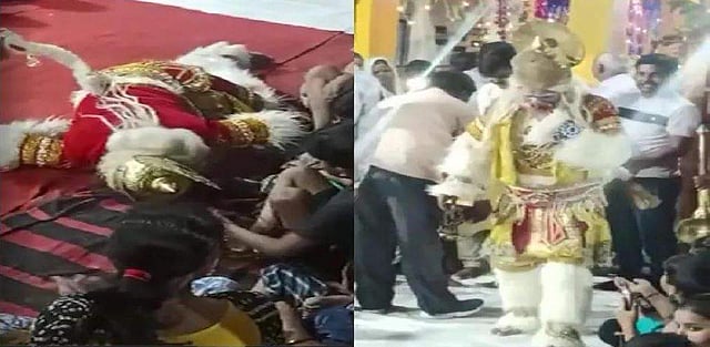 ഹനുമാന്‍ വേഷത്തില്‍ നൃത്തം ചെയ്യുന്നതിനിടെ കുഴഞ്ഞു വീണു; നടന് അരങ്ങില്‍ യാത്രാ മൊഴി (വീഡിയോ)