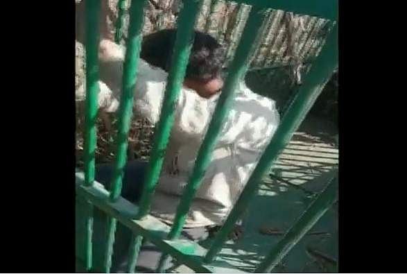 തന്നെ കൂട്ടില് നിന്ന് മോചിപ്പിക്കാന് യുവാവ് വനംവകുപ്പ് ഉദ്യോഗസ്ഥരോട് ആവശ്യപ്പെടുന്ന ദൃശ്യങ്ങള് പുറത്തുവന്നിട്ടുണ്ട്. കൂടിന്റെ പച്ച നിറത്തിലുള്ള ഇരുമ്പുകമ്പിയില് പിടിച്ച് കൊണ്ടാണ് തന്നെ പുറത്തുവിടാന് യുവാവ് സഹായം അഭ്യര്ഥിക്കുന്നത്.