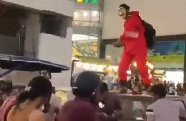 രാജസ്ഥാനിലെ ജയ്പൂരില് മാളിലാണ് സംഭവം. ജയ്പൂര് സ്വദേശിയായ അജയ് ശര്മ്മയാണ് സോഷ്യല്മീഡിയയില് വീഡിയോ വൈറല് ആകാന് നോട്ടുകള് വിതറിയത്. മുഖംമൂടി ധരിച്ച് കാറിന്റെ മുകളില് കയറിയ അജയ് ശര്മ്മ 20 രൂപയുടെ നൂറില്പ്പരം നോട്ടുകളാണ് വിതറിയത്. മണി ഹെയ്സ്റ്റ് വെബ് സീരിസിലെ സമാനമായ സീന് പുനരാവിഷ്കരിക്കാന് പ്രതി ശ്രമിക്കുകയായിരുന്നു എന്നാണ് പൊലീസിന്റെ പ്രാഥമിക നിഗമനം. നോട്ടുകള് വ്യാജമാണെന്ന് അജയ് ശര്മ്മ മൊഴി നല്കിയതായും പൊലീസ് പറയുന്നു.