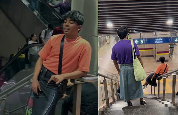 ന്യൂഡല്ഹി: ഫാഷന് അതിരുകളില്ല. ഓരോ കാലഘട്ടത്തിനും അനുയോജ്യമായ ഫാഷന് തെരഞ്ഞെടുക്കുന്നതില് യുവജനങ്ങള്ക്ക് പ്രത്യേക വൈഭവം ഉണ്ട്. ഇപ്പോള് ഡല്ഹി മെട്രോയില് പാവാട ധരിച്ചെത്തിയ രണ്ടു യുവാക്കളാണ് സോഷ്യല്മീഡിയയിലെ താരങ്ങള്.