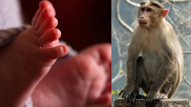 വീടിനു പുറത്തു നിന്ന അമ്മയുടെ കൈയില് നിന്നാണ് കുരങ്ങന് കുഞ്ഞിനെ തട്ടിയെടുത്തത്. പിന്നാലെ കുഞ്ഞിനേയും കൊണ്ട് കുരങ്ങന് ടെറസിലേക്ക് കയറി. സംഭവം ശ്രദ്ധയില്പ്പെട്ട നാട്ടുകാര് കുഞ്ഞിനെ രക്ഷിക്കാനായി പടക്കം പൊട്ടിക്കുകയും ശബ്ദമുണ്ടാക്കുകയും ചെയ്തു.