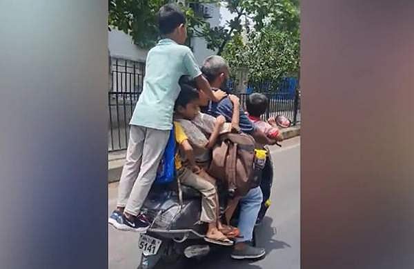 ബൈക്കിന്റെ മുന്നില് രണ്ട് കുട്ടികളെ നില്ക്കുന്നതും ഇയാളുടെ പുറകില് മൂന്ന് കുട്ടികള് ഇരിക്കുന്നതും മറ്റ് രണ്ടുപേര് പിന്നില് നില്ക്കുന്നതും വീഡിയോയില് കാണാം. ഇയാളുടെ കുറ്റകരമായ ഡ്രൈവിങ്ങിനെതിരെ സാമൂഹിക മാധ്യമത്തില് വലിയ പ്രതിഷേധം ഉയര്ന്നിരുന്നു. ഏഴ് ചെറിയ കുട്ടികളുമായി അപകടരമായി യാത്ര ചെയ്യുന്ന ഇയാളെ ഉടന് അറസ്റ്റ് ചെയ്യണമെന്നാണ് ഭുരിഭാഗം പേരും അഭിപ്രായപ്പെട്ടത്.