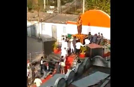 വേദിയില് കയറി പുഷ്പാഞ്ജലി അര്പ്പിക്കുന്നതിനിടെ, പിന്നില് നിന്ന് അതിവേഗം നടന്നുവന്ന അക്രമി പെട്ടെന്ന് തന്നെ മുഖ്യമന്ത്രിയെ ആക്രമിക്കുകയായിരുന്നു. ഉടനെ തന്നെ സുരക്ഷാ ഉദ്യോഗസ്ഥര് അക്രമിയെ പിടികൂടി. സുരക്ഷാ ഉദ്യോഗസ്ഥര് ചുറ്റിലും നില്ക്കുമ്പോഴായിരുന്നു സുരക്ഷാ വീഴ്ച സംഭവിച്ചത്. ഇതിന്റെ ദൃശ്യങ്ങള് പുറത്തുവന്നിട്ടുണ്ട്.
