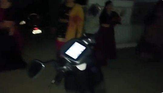 ഗുജറാത്തിലെ സൂറത്തിൽ ഒരു സംഘം ആളുകൾ നവരാത്രി ആഘോഷങ്ങളിൽ മുഴുകിയിരിക്കുമ്പോഴവാണ് അവിചാരിതമായി കറന്റ് പോയത്. ഉച്ചത്തിൽ പാട്ടുവച്ച് നൃത്തം ചെയ്യുന്നതിനിടെയായിരുന്നു ഒട്ടും പ്രതീക്ഷിക്കാതെ കറന്റ് ചതിച്ചത്. എന്നാൽ ഒട്ടും വൈകാതെ ഇലക്ട്രിക് സ്കൂട്ടർ ഉപയോഗിച്ച് പാട്ട് വച്ച് ആഘോഷം തുടരുകയായിരുന്നു ഇവർ.