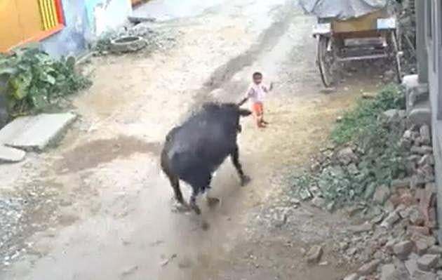 കുട്ടിയെ ഇടിച്ചിട്ട കാളയെ ഇതുവരെ പിടികൂടാന് കഴിഞ്ഞില്ലെന്നാണ് റിപ്പോര്ട്ടുകള്. കാള ഇടിച്ചിട്ട ശേഷം കുട്ടിയെ ചവിട്ടിയിടുന്നതും വീഡിയോയില് കാണാം. ഓടിയെത്തിയ ആളാണ് കുട്ടിയെ കാളയില് നിന്ന് രക്ഷിക്കുന്നത്.