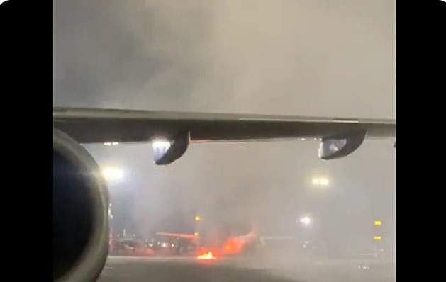 വിമാനത്തിന് തീപിടിച്ചതിന്റെ വീഡിയോ സാമൂഹ്യ മാധ്യമങ്ങളിലൂടെ പുറത്തുവന്നു.