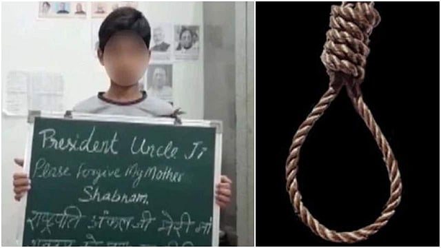 2008 ഏപ്രിലില് കുടുംബത്തിലെ ഏഴംഗങ്ങളെ കാമുകന്റെ സഹായത്തോടെ കോടാലിക്കു വെട്ടിക്കൊന്ന കേസിലെ പ്രതി ഷബ്നത്തിനെയാണു മഥുര ജയിലില് തൂക്കിലേറ്റുന്നത്.അമ്മ ജയിലായതിന് ശേഷം ചില്ഡ്രന്സ് ഹോമിലാണ് 12 വയസുകാരന് കഴിയുന്നത്. അമ്മയെ തൂക്കിക്കൊല്ലരുതെന്ന് ചോക്ക് ബോര്ഡില് എഴുതിയാണ് രാഷ്ട്രപതിയോട് അപേക്ഷിക്കുന്നത്. അമ്മയുടെ കേസ് ഒരിക്കല് കൂടി പരിഗണിച്ച ശേഷം അമ്മയ്ക്ക് മാപ്പ് നല്കണമെന്നും മകന് പറയുന്നു.