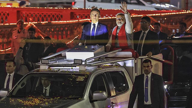 പ്രധാനമന്ത്രി നരേന്ദ്ര മോദിയും മാക്രോണും ഒന്നിച്ച് ജയ്പുരിൽ റോഡ് ഷോയിൽ പങ്കെടുത്തു. മോദിക്കൊപ്പം ജയ്പൂരിൽ മഹാരാജ സവായ് ജയ് സിങ് സ്ഥാപിച്ച സോളാർ ഒബ്സർവേറ്ററി മാക്രോൺ സന്ദർശിച്ചു.