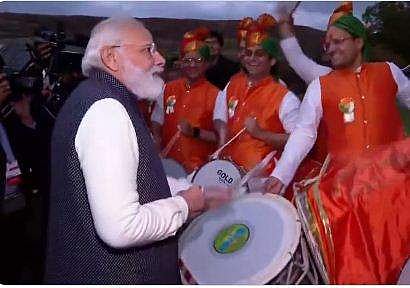 ഡ്രംസില്‍ താളം പിടിച്ച് പ്രധാനമന്ത്രി; എല്ലാവരോടും കുശലാന്വേഷണം, ഗ്ലാസ്‌ഗോയില്‍ മനം കവര്‍ന്ന് മോദി ( വീഡിയോ)