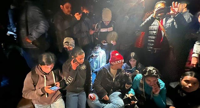വൈദ്യുതി പുനസ്ഥാപിക്കാന്‍ അധികൃതര്‍ വിസമ്മതിച്ചതിനെ തുടര്‍ന്ന് വിദ്യാര്‍ത്ഥികള്‍ കൂട്ടമായി ഇരുന്ന് മൊബൈല്‍ ഫോണുകളില്‍ ഡോക്യുമെന്ററി കണ്ടു.