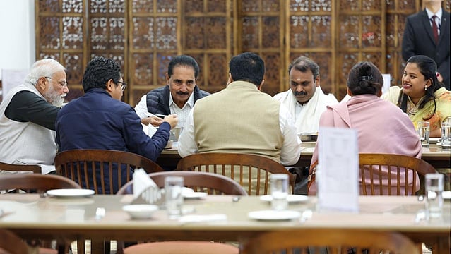 ബിജെപി എംപിമാരായ ഹീന ഗാവിത്, എസ് ഫങ്നോണ് കൊന്യാക്, ജംയാങ് സെറിങ് നംഗ്യാല്, എല്.മുരുകന്, ടിഡിപി എം.പി രാംമോഹന് നായിഡു, ബിഎസ്പി എംപി റിതേഷ് പാണ്ഡെ, ബിജെഡി എംപി സസ്മിത് പത്ര, ആര്എസ്പി എംപി എന്കെ പ്രേമചന്ദ്രന് എന്നിവര് പ്രധാനമന്ത്രിക്കൊപ്പം പാര്ലമെന്റ് കാന്റീനില് ഉച്ചഭക്ഷണത്തിനെത്തി.